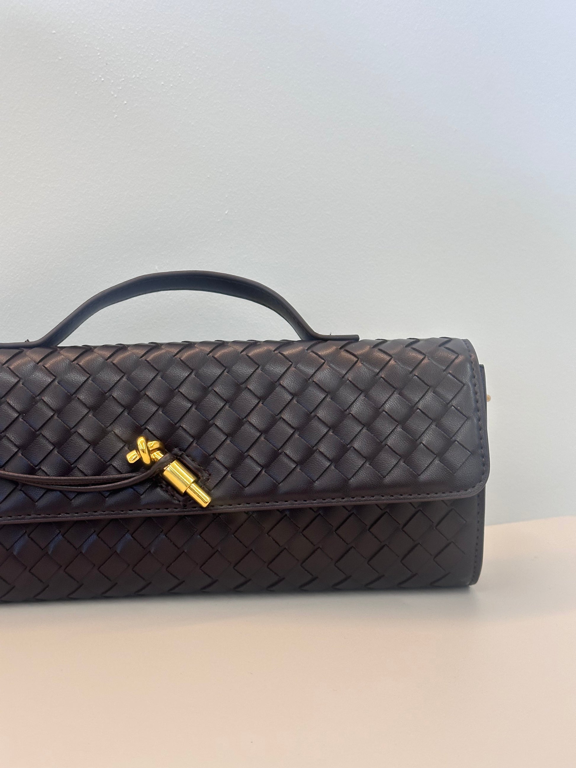 Elevate your look with our timeless Envelope Woven Clutch, crafted from premium vegan leather in a luxe basket-weave finish. Designed with clean lines and a structured silhouette, this clutch is both elegant and versatile – perfect for evenings out or adding polish to everyday outfits.